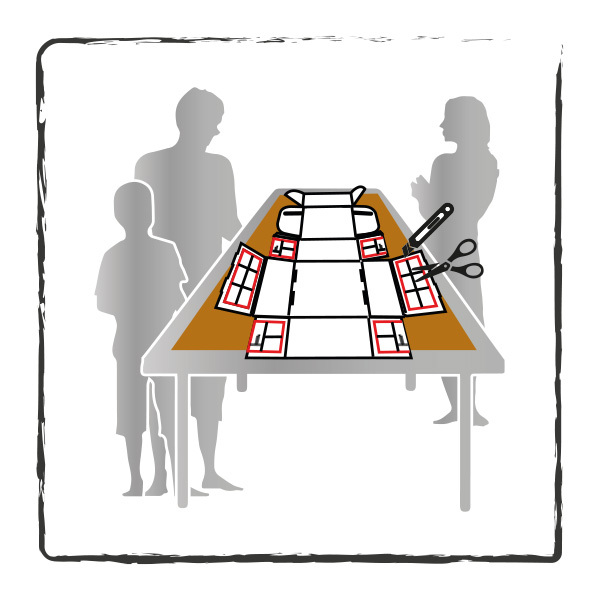 Smonta la scatola aprendo le pareti laterali. Fai attenzione! Maneggia con cura la scatola e fatti aiutare da qualche adulto se vuoi che il tuo gioco esca al meglio: alcuni passaggi potrebbero essere delicati.